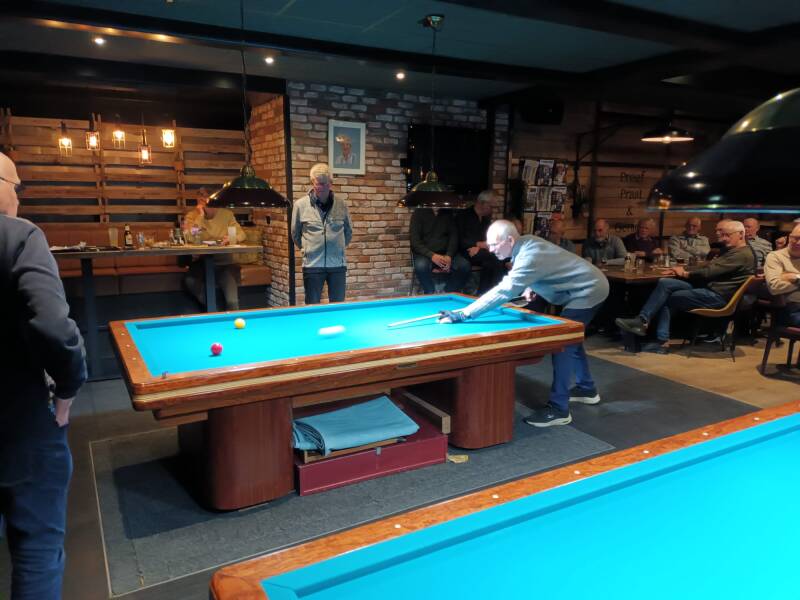 Het bleek wel dat bandstoten toch wel wat moeilijker is dan het libre spelletje maar iedereen was gemotiveerd om zijn punten te maken. Klaas Meilink hield het tempo er goed in want als de partij afgelopen was stonden de volgende al weer klaar!
